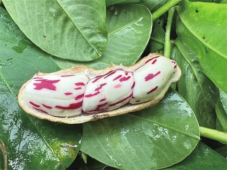 ▲七彩花生的果仁呈浅紫色花纹。